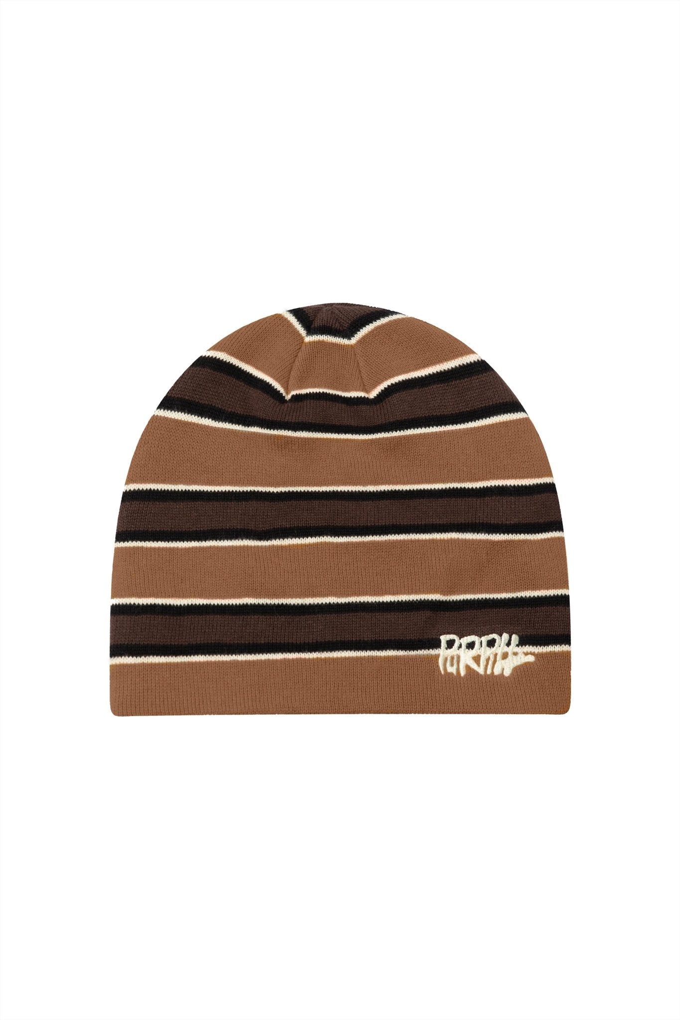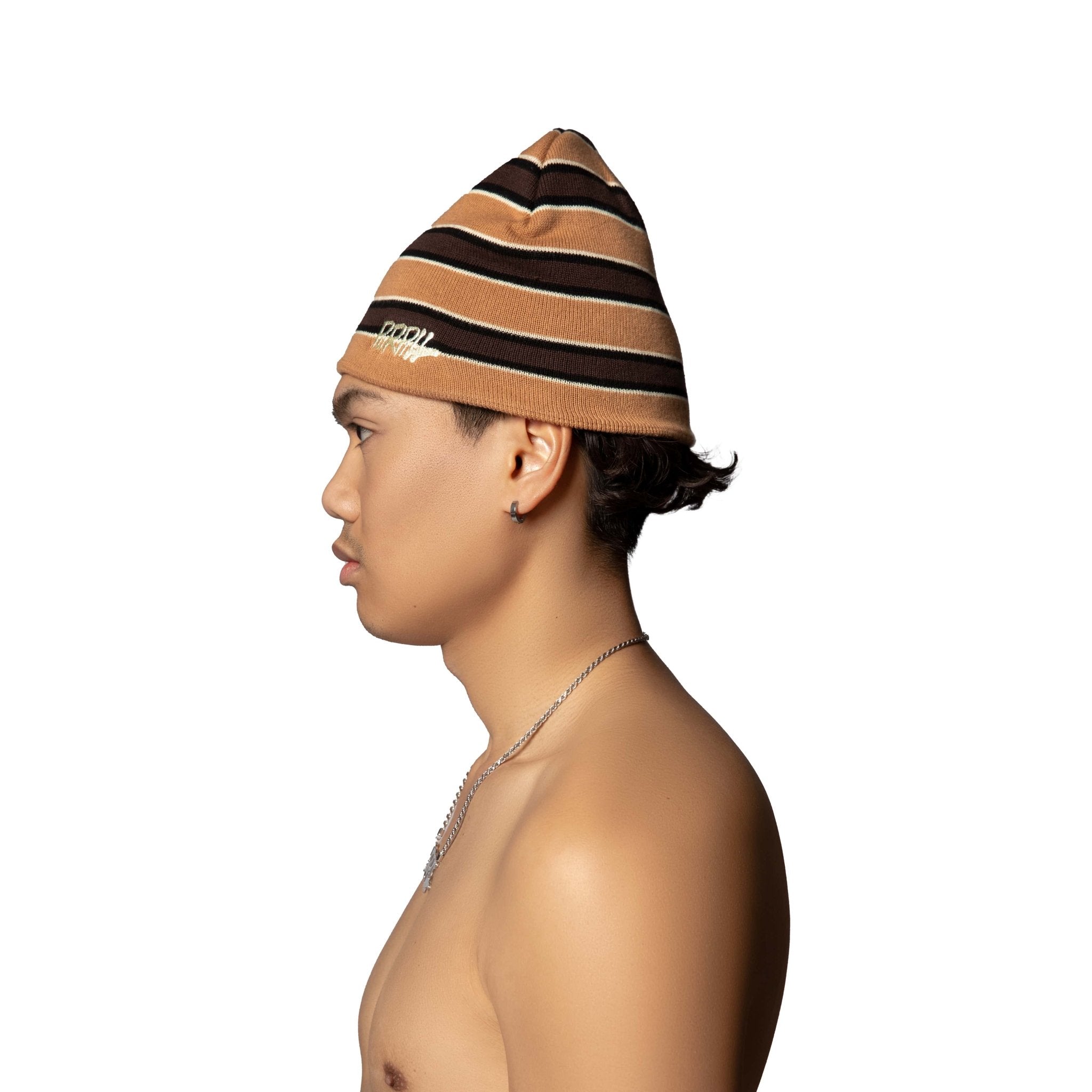 STRIPED EMBROIDERY BEANIE – MOCHA (PRE ORDER 2 WEEKS)